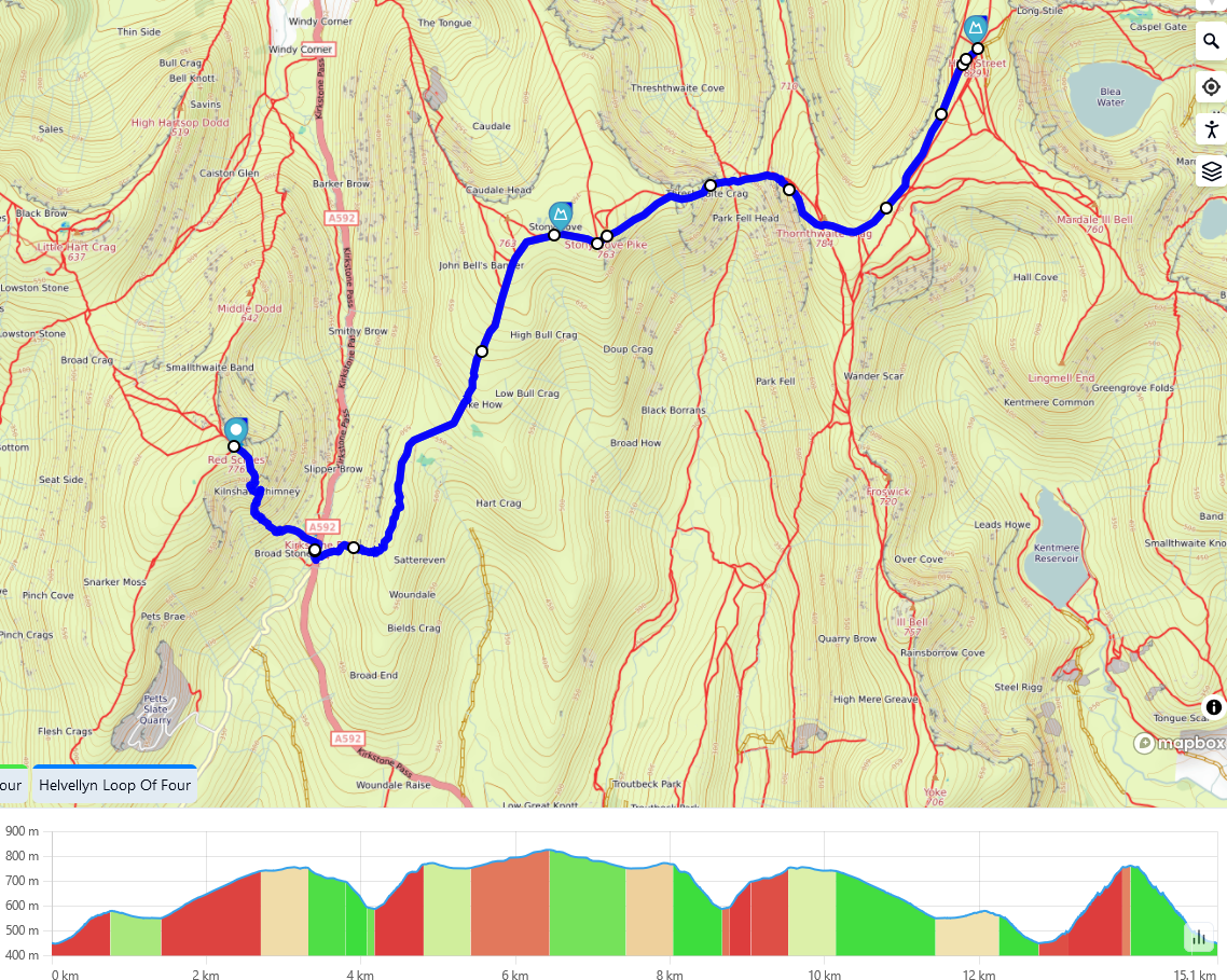 Park at Kirkstone Pass car park, go NW to Stony Cove then High Street, turn around and back to the car park. Red Screes is the other side but a quick up and down…